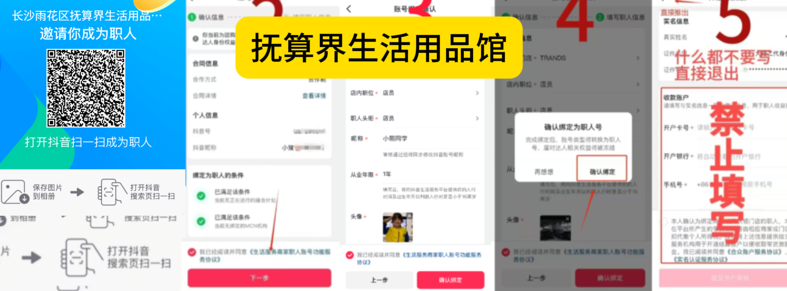 下之前先:打开抖音扫码绑定职人,完成后才能解绑(临时绑定才能发授权)